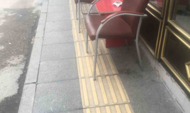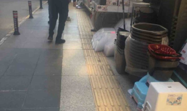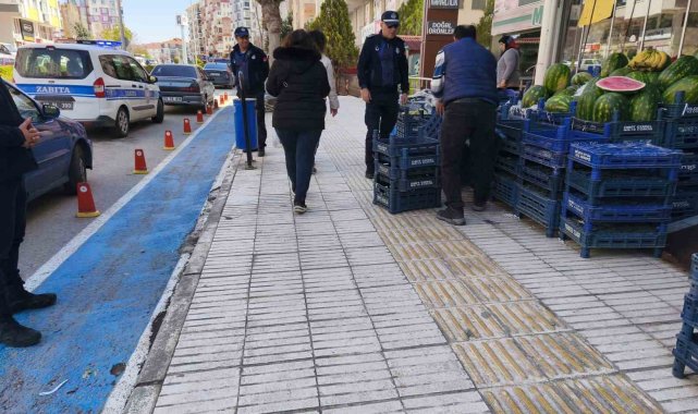 Çorum Belediyesi ekipleri, engelliler için kaldırımlarda yapılan sarı çizgilerin üzerine eşya koyan işletmelere yönelik denetimlerini sürdürüyor.