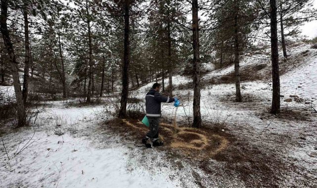 Çorum Belediyesi, yaban hayvanları için doğada yemleme çalışması yaptı.
