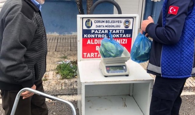 Çorum Belediyesi Zabıta Müdürlüğü ekipleri, semt pazarlarında denetimlerini sürdürüyor. Vatandaşların satın aldığı ürünler tartı noktalarında kontrol ediliyor.