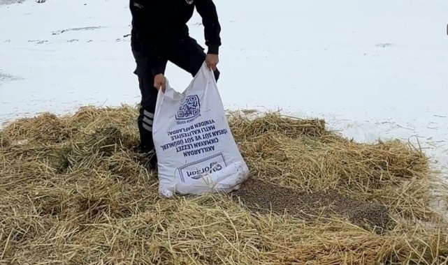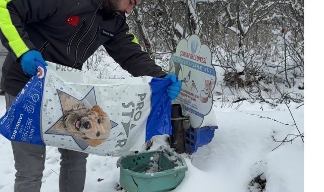 Çorum Belediyesi ekipleri soğuk kış günlerinde doğadaki canlıları unutmayarak mama ve yem dağıtımı yaptı.