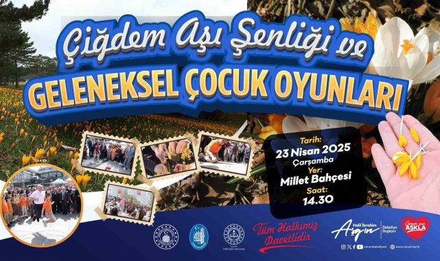 Çorum Belediyesi ve İl Milli Eğitim Müdürlüğünce, düzenlenen programda unutulmaya yüz tutmuş kültürel değerlerin yaşatılıp gelecek kuşaklara aktarılması amacıyla "Çiğdem Aşı Şenliği ve Geleneksel Çocuk Oyunları Etkinliği" kutlamaları ile gerçekleşecek. 23 Nisan Çarşamba günü saat 14.30'da Millet Bahçesi'nde gerçekleştirilecek etkinlikte çocuklar doyasıya eğlenecek. Geleneksel çocuk oyunları etkinliği sonrası, saat 15.30'da Çorum Belediyesi tarafından 23 Nisan Ulusal Egemenlik ve Çocuk Bayramı'na özel düzenlenen Çocuk Şenliği ile bayram coşkusu devam edecek.