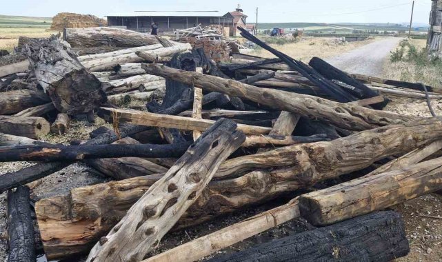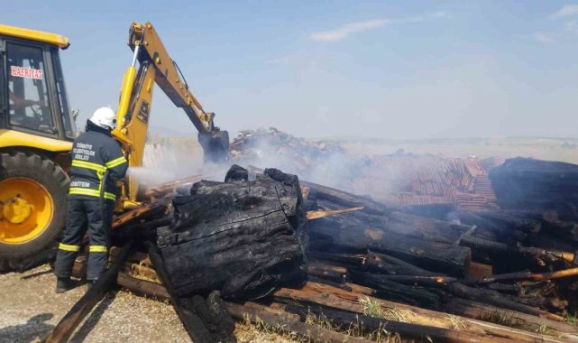 Çorum'da 7 ton odun ve kereste alev alev yandı