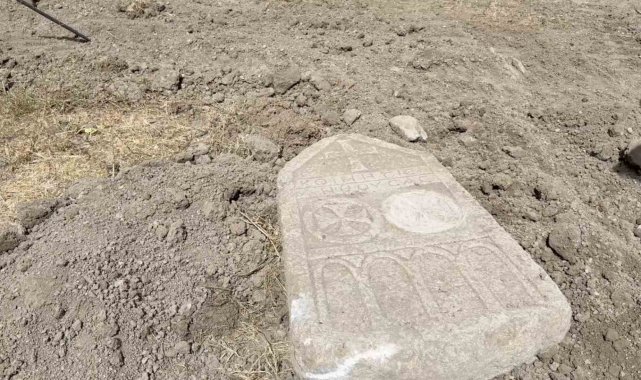 Çorum'un Alaca ilçesinde yürütülen altyapı çalışması sırasında üzerinde haç motifleri ve yazılar bulunan tarihi bir mezar taşı bulundu.