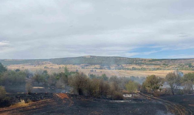 Çorum'un Alaca ilçesinde çıkan yangında 250 dönüm tarla ve 15 dönüm ormanlık alan zarar gördü.