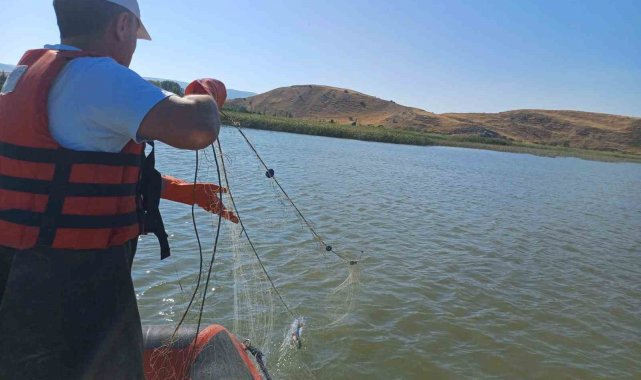 Çorum'da Obruk Barajı'nda gerçekleştirilen denetimlerde ele geçirilen balık ağlarına el konulurken, kaçak avlanan 4 kişiye idari para cezası uygulandı.