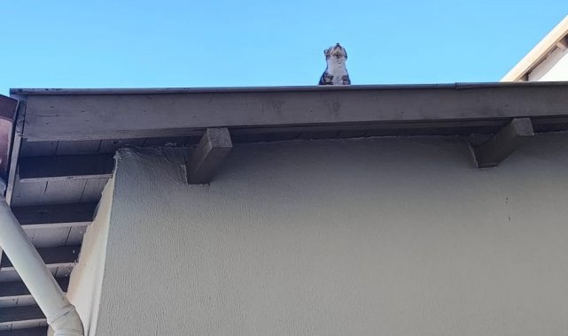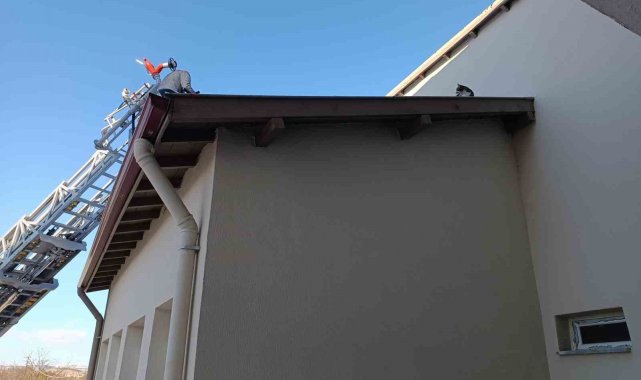 Çorum'un Alaca ilçesinde, binasının çatısında mahsur kalan kedi, itfaiye ekiplerinin çalışmasıyla kurtarıldı.