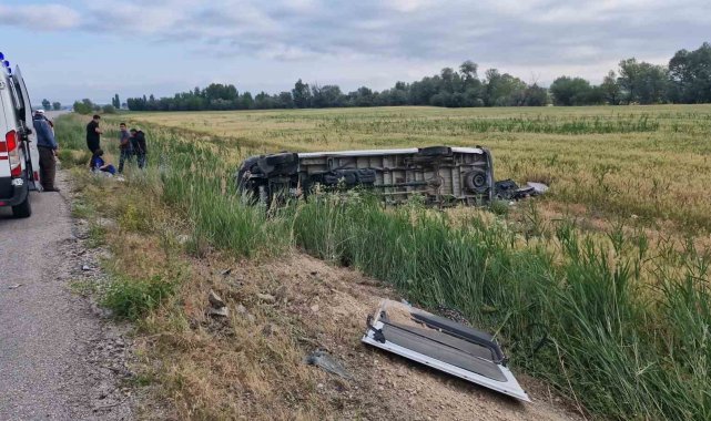 Çorum'da düğünden dönen vatandaşların bulunduğu minibüs devrildi: 17 yaralı
