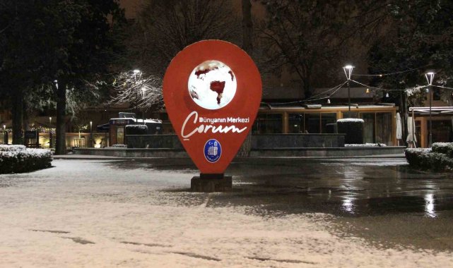Çorum'da yüksek kesimlerde etkili olan kar yağışı gece saatlerinde şehir merkezine de ulaştı. Hava sıcaklığının düşmesiyle birlikte başlayan lapa lapa kar yağışı, caddeleri, parkları ve araçların üzerini beyaz örtüyle kapladı. Aniden bastıran kar yağışıyla birlikte tarihi Saat Kulesi ve çevresinde kartpostallık görüntüler oluştu. Yılın son gününde gelen kar yağışı ile birlikte Çorum Belediyesi'ne bağlı kar küreme ve tuzlama ekipleri, şehir içinde ulaşımın olumsuz etkilenmemesi için çalışmalarını sürdürüyor. Öte yandan yağışın aralıklarla devam etmesi bekleniyor.