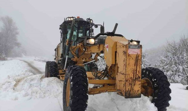 Çorum'da etkili olan yoğun kar yağışı nedeniyle kapanan köy yollarının ulaşıma açılması için İl Özel İdaresi ekipleri çalışmalarını sürdürüyor.