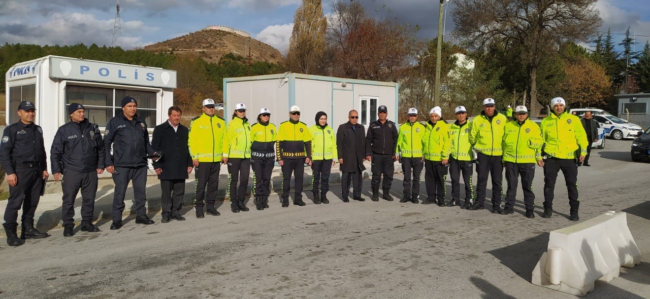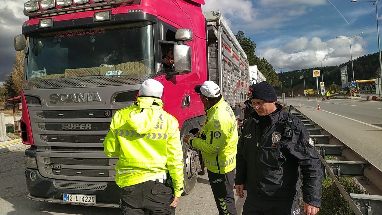 Çorum İl Emniyet Müdürü Arif Pehlivan, Bölge Trafik Şube Müdürlüğü'ne bağlı ekiplerle uygulama noktalarında şehirlerarası yük ve yolcu taşıyan ticari araçlara yönelik kış lastiği denetimi yaptı.