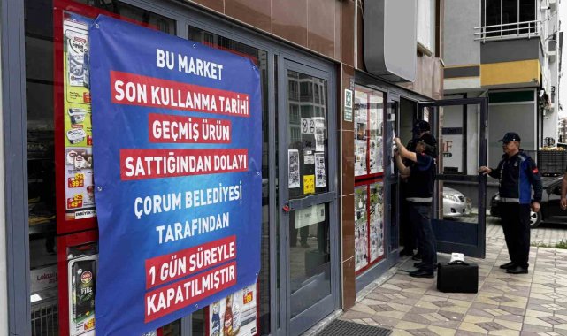 Çorum Belediyesi Zabıta Müdürlüğü ekipleri son kullanma tarihi geçen ürün satışı yapan 3 zincir market şubesini mühürleyerek kapatma cezası uyguladı.