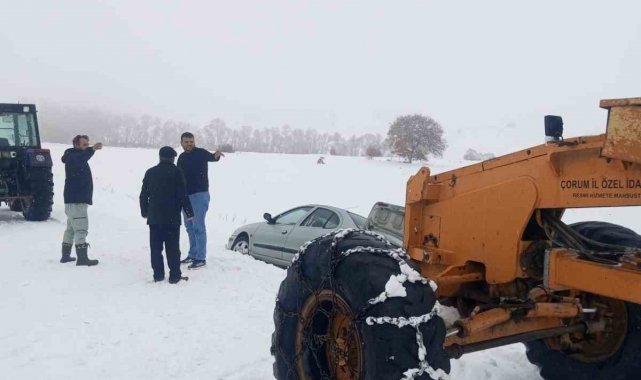 Çorum'da mahsur kalan araçlar için ekipler seferber oldu