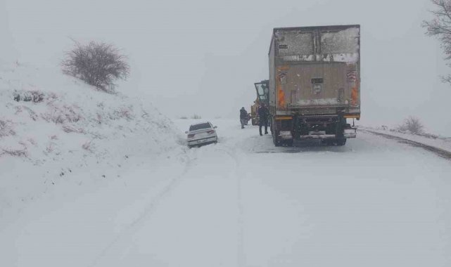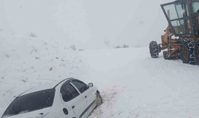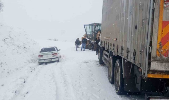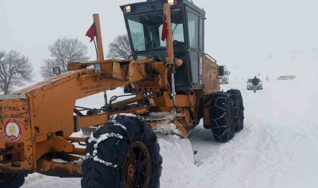 Çorum'un Alaca ilçesinde yoğun kar yağışı sebebiyle araçlarıyla yolda mahsur kalan vatandaşlar, Çorum İl Özel İdaresi ekiplerinin çalışmasıyla kurtarıldı.