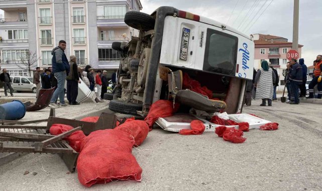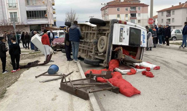 Çorum'da tarım işçilerini taşıyan minibüs, otomobille çarpıştı. Kazada devrilen minibüsteki 5 işçi yaralandı.