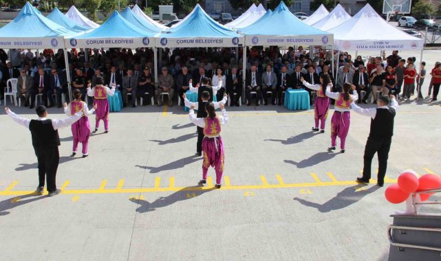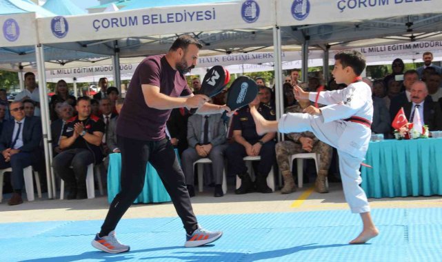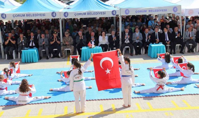 Çorum'da İlköğretim Haftası çerçevesinde düzenlenen programda, öğrenciler halk oyunları ve teekwondo gösterileriyle izleyenleri hayran bıraktı.