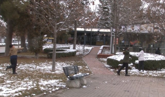 Çorum'da etkili olan kar yağışının ardından okulların tatil edilmesini fırsat bulan çocuklar, parklarda doyasıya eğlendi.