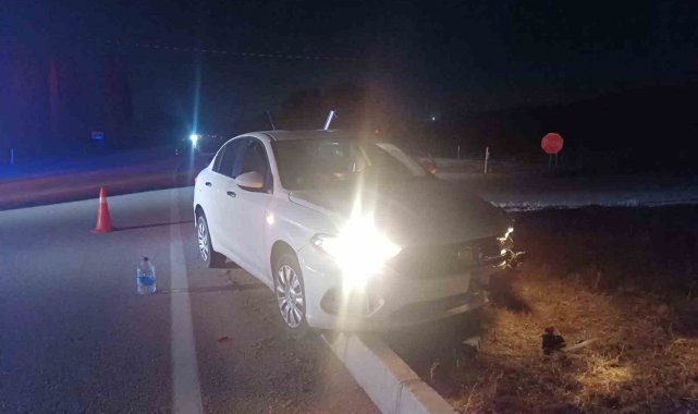 Çorum'da otomobil refüje çarptı: Araçtakiler hafif sıyrıklarla kurtuldu