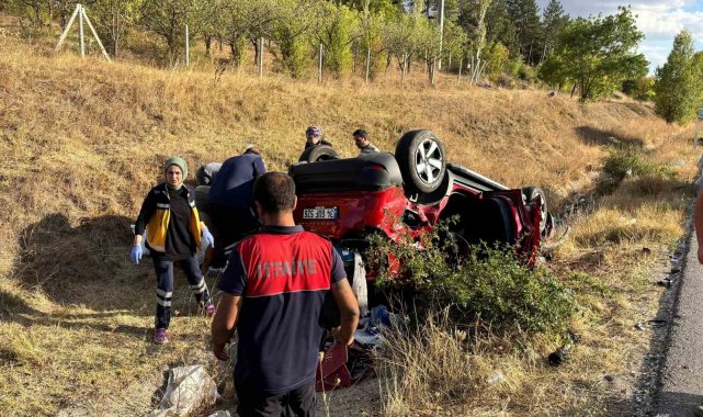 Çorum'da otomobil takla attı: 2 yaralı