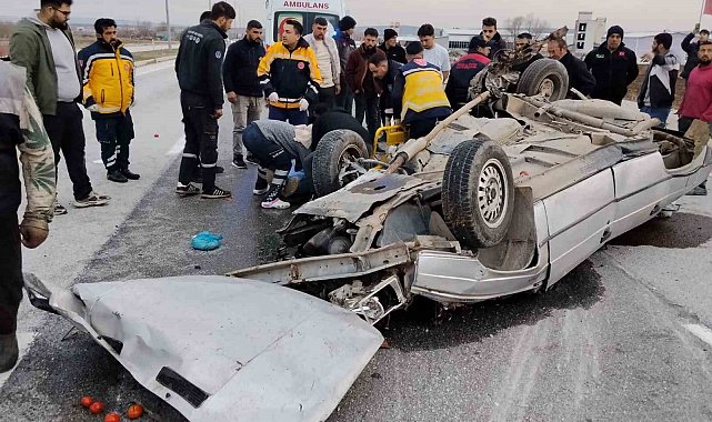 Çorum'un Alaca ilçesinde otomobilin refüjdeki aydınlatma direğine çarparak takla atması neticesinde meydana gelen trafik kazasında 1'i ağır 3 kişi yaralandı.