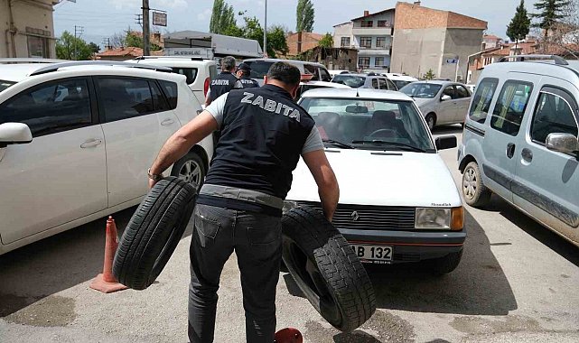 Çorum'da otopark etrafındaki araç park engellerine müdahale