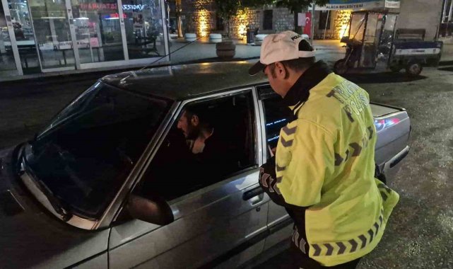 Çorum'un Alaca ilçesinde polis ekipleri, emniyet kemeri uygulaması yapıp sürücülere bilgilendirici broşür dağıttı.