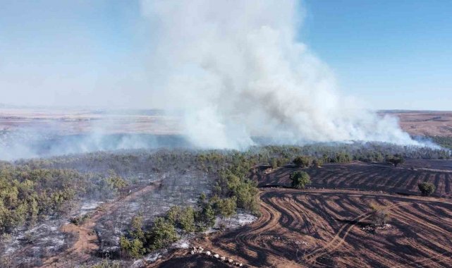 Çorum'da tarım arazisindeki yangın ormanlık alana sıçradı