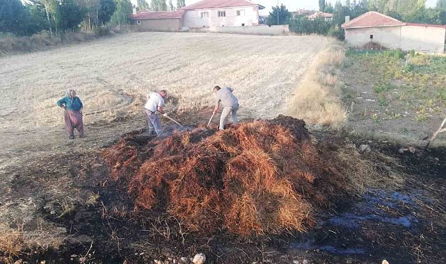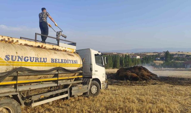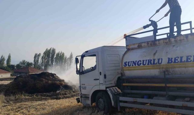 İhbar üzerine olay yerine Sungurlu Belediyesi itfaiye ve jandarma ekipleri sevk edildi. Ekipler çıkan yangını çok büyümeden söndürdü. Yangında 300 adet balya yanarak kül oldu.