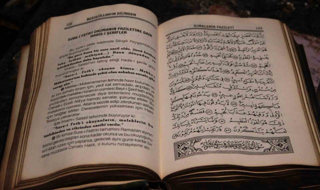 Çorum'da çıkan yangında kullanılamaz hale gelen gecekonduda masa üzerindeki Kur'an-ı Kerim meali ile plastik şişedeki zemzem suyu zarar görmedi. Yangında 40 yıllık birikimini kaybeden vatandaş, "O kadar ateşe rağmen masanın üzerindeki Kur'an-ı Kerim mealinin bulunduğu bölüm yanmamış" dedi.