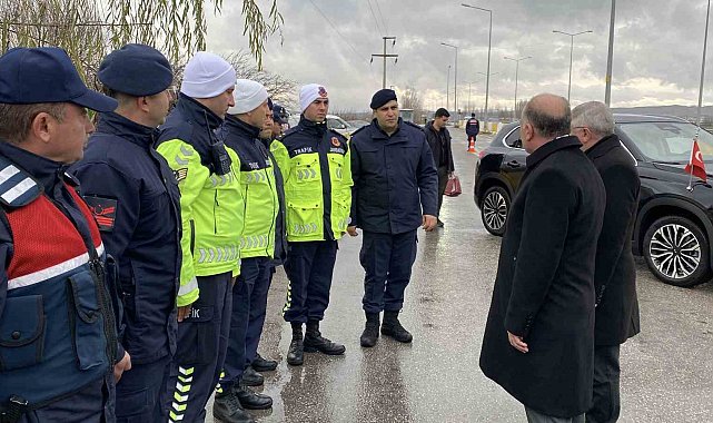 Çorum'da 2026 yılına saatler kala, kentin huzur ve güvenliği için tedbirler üst seviyeye çıkartıldı. Vali Ali Çalgan, Çorum Belediye Başkanı Halil İbrahim Aşgın, İl Emniyet Müdürü Arif Pehlivan ve Çorum İl Jandarma Komutanı Kıdemli Albay Kubilay Ayvaz ile birlikte yılbaşı tedbirleri kapsamında görev yapan personeli ziyaret ederek yapılan çalışmaları yerinde denetledi. Ankara kara yolu üzerinde bulunan jandarma uygulama noktasında gerçekleştirilen ziyaretin ardından açıklamalarda bulunan Vali Ali Çalgan, sürücülere de kurallara uymaları yönünde hatırlatmalarda bulundu.