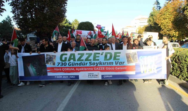 Çorum'da, İsrail'in Gazze'deki soykırımını protesto etmek amacıyla yürüyüş düzenlendi. Çorum Valiliği önünde toplanan kalabalık, açtıları pankartlarla, sloganlar eşliğinde Hürriyet Meydanı'na kadar yürüdü. Yürüyüşün ardından vatandaşlar, Gazzeliler için dua etti. Yürüyüşe Çorum Belediye Başkanı Dr. Halil ibrahim Aşgın, Hitit Üniversitesi Rektörü Prof. Dr. Ali Osman Öztürk, siyasi parti ve STK temsilcileri de katılarak vatandaşlara destek verdi.