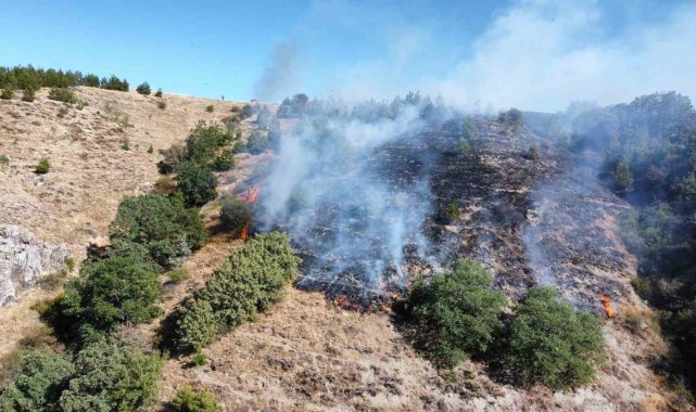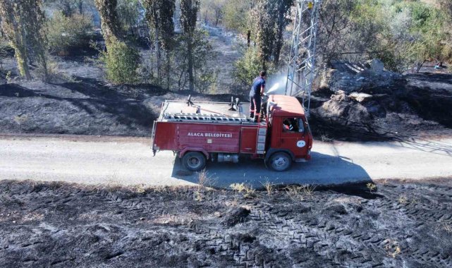 Çorum'un Alaca ilçesinde otluk alanda çıkan ve ormana sıçrayan yangın, itfaiye ekipleri tarafından kontrol altına alındı.
