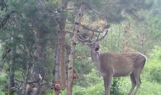Çorum'da yaban hayvanlarının ormandaki yaşamı fotokapan kameralarına yansıdı.