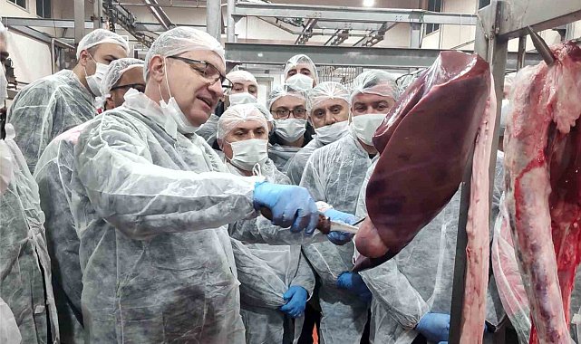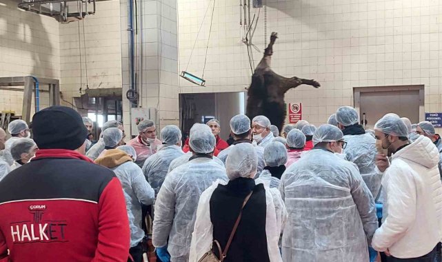 Teorik eğitimin ardından, uygulamalı eğitim için Çorum Belediyesi Halk Et Kombinasına ziyaret gerçekleştiren katılımcılar, kesim öncesi ve kesimi yapılan hayvanların tüm aşamalarına dair bilgi edindi.
