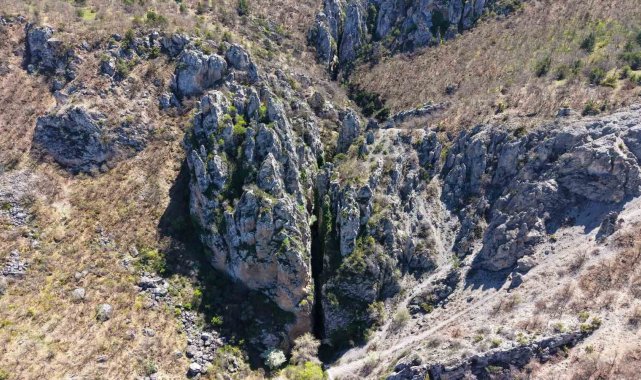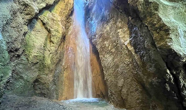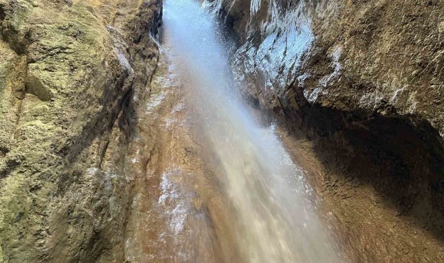 Çorum'da kayaların arasında yılın belli döneminde akan şelale ziyaretçilerini hayran bırakıyor.