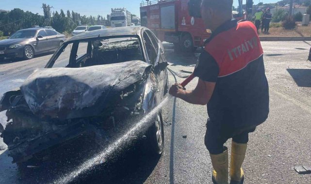 Çorum'un Sungurlu ilçesinde iki otomobilin çarpıştığı kazada araçlardan biri alev alarak yanarken, 1'i ağır 4 kişi yaralandı.