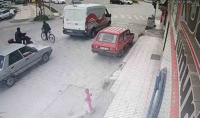 Çorum'da seyir halindeki elektrikli motosiklet, bisiklete çarptı. Kaza anı bir işyerinin güvenlik kamerasına yansıdı.