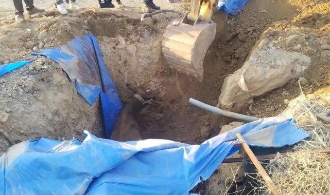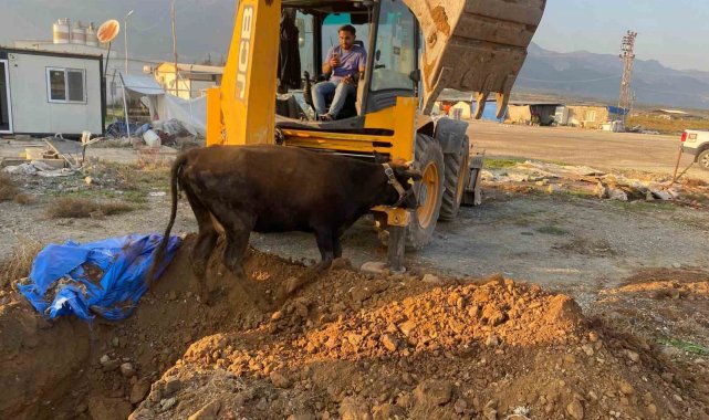 Hatay'ın Kırıkhan ilçesinde çukura düşen büyükbaş hayvan, itfaiye ekipleri tarafından kurtarıldı.
