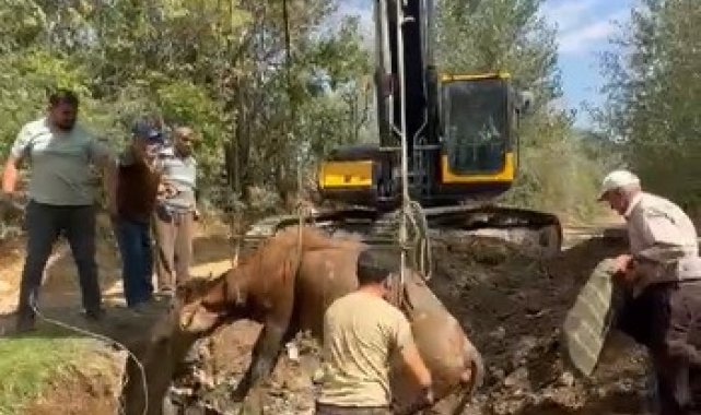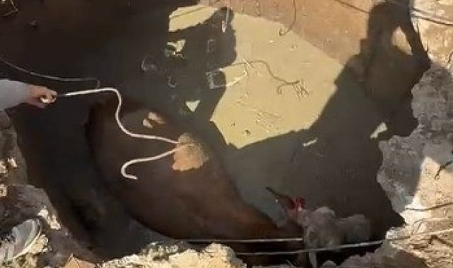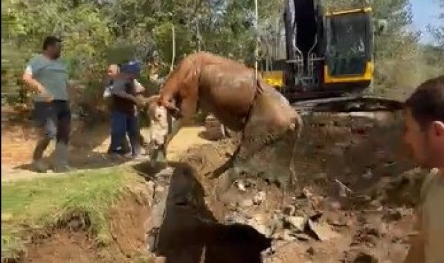 Yozgat'ta çukura düşen ineğin imdadına İl Özel İdare ekipleri yetişti.