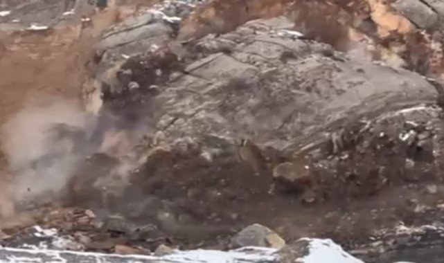 Hakkari-Çukurca kara yolunda yol kenarında bulunan büyük bir kaya parçası yerinden oynayarak yola doğru hareket etti. O anlar, bölgede bulunan İsmail Kaynak tarafından cep telefonu kamerasıyla kaydedildi. Görüntülerde, dağ yamacındaki büyük kaya kütlesinin yerinden koparak aşağı doğru indiği görülüyor.