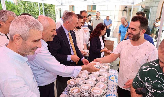 Gebze Belediyesi tarafından cami çıkışında kurulan stantta vatandaşlara aşure dağıtan protokol üyeleri, paylaşmanın, dayanışmanın ve kardeşliğin önemine vurgu yaptı.