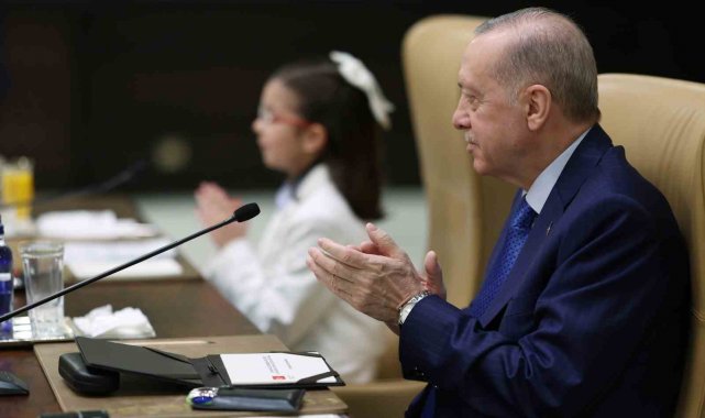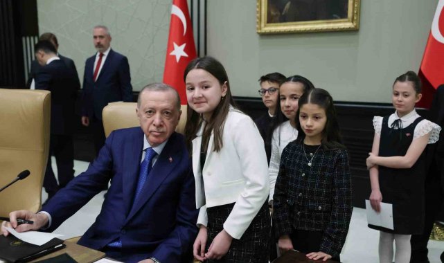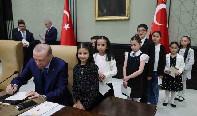 Cumhurbaşkanı Recep Tayyip Erdoğan, 23 Nisan Ulusal Egemenlik ve Çocuk Bayramı dolayısıyla Cumhurbaşkanlığı Külliyesi'nde Milli Eğitim Bakanı Yusuf Tekin ve beraberindeki çocukları kabul etti. Renkli görüntülere sahne olan programda Cumhurbaşkanı Erdoğan, çocuklarla yakından ilgilendi, onlarla sohbet etti.