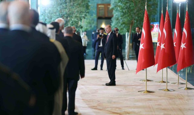 Cumhurbaşkanı Recep Tayyip Erdoğan, 29 Ekim Cumhuriyet Bayramı ve Türkiye Cumhuriyeti'nin 102. yılı kutlamaları kapsamında Anıtkabir'deki törenin ardından Cumhurbaşkanlığı Külliyesi'nde bayram tebriklerini kabul etti.