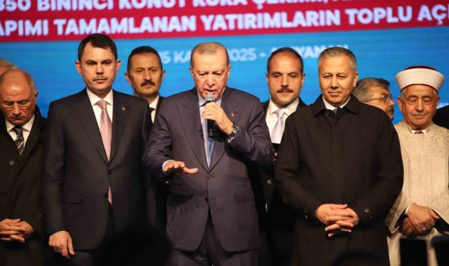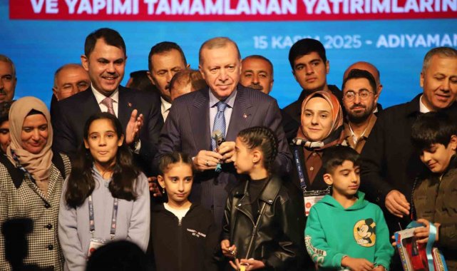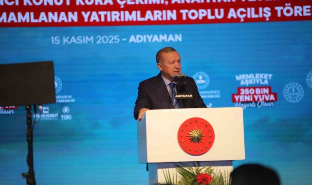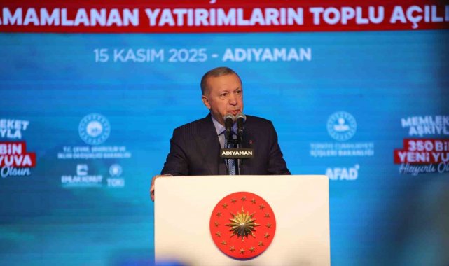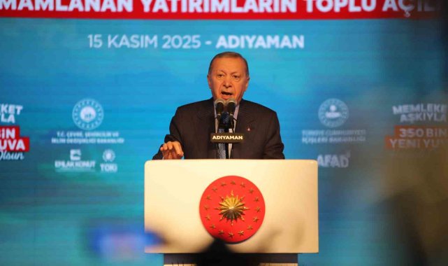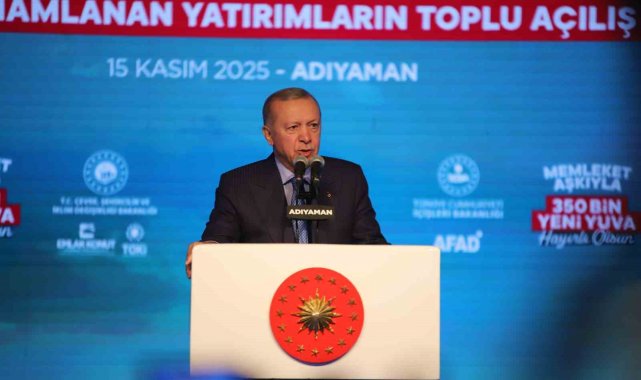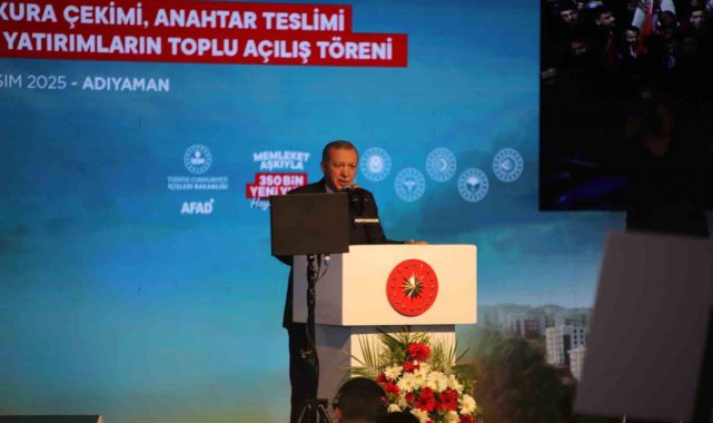 Cumhurbaşkanı Erdoğan, "Sadece enkazları kaldırmadık çok daha önemlisi Anka kuşu misali milletçe küllerimizden yeniden doğduk. Bir yandan kardeşlerimizi yeni evlerine kavuşturuyor. Diğer yandan depremden etkilenen tüm şehirlerimizi yeniden ayağa kaldırıyoruz. Eylül ayında Malatya'da 304 bininci konutumuzun anahtarlarını teslim etmiştik. Bugün de söz verdiğimiz gibi konutlarımızın yüzde 78'ini tamamladığımız 350 bininci yuvamızın anahtarını Adıyaman'ımızda teslim ediyoruz. Depremin üzerinden geçen 2 yılda sadece Adıyaman'da 38 bin 157 konut ve işyerini teslim ettik. Türkiye'nin en büyük 2. şantiye alanını Adıyaman'ımızda kurduk. İndere'de 5 milyon metrekarelik devasa alanda 16 bin yuvamızı tamamlayarak 100 bine yakın vatandaşımızı içinde güvenle huzurla yaşayacakları konutlarıyla inşallah buluşturacağız. Bugün Adıyaman ile birlikte Malatya'mızda 21 bin 760, Hatay'ımızda 11 bin 320, Kahramanmaraş'ımızda 6 bin 523, Gaziantep'imizde 3 bin 834, Şanlıurfa'mızda 644, Elazığ'mızda 354, Osmaniye'mizde 214, Tuncel'imizde 97, Sivas'ımızda 79, Bingöl'ümüzde 62, Diyarbakır'ımızda 50, Kayseri'mizde 15, Adana'mızda 14 olmak üzere toplam 45 bin 342 yuvamızı daha teslim ediyoruz. Böylece toplam 350 bin 178 bağımsız bölümün anahtarlarını hak sahibi kardeşlerimize takdim etmiş oluyoruz. Bugün deprem konutları ve iş yerleri ile birlikte ayrıca Gençlik ve Spor Bakanlığımızın 10 projesini, İçişleri Bakanlığımızın 11 projesini, Milli Eğitim Bakanlığımızın 99 okul yatırımını resmen hizmete veriyoruz. Yılsonunda Adıyaman'ımızda 40 bin 993 konut ve 2 bin 580 işyeri olmak üzere toplam 43 bin 573 konut ve işyerini deprem bölgemizin tamamında ise 453 bin bağımsız bölümü teslim etmeyi hedefliyoruz. Depremde hasar gören 235 kilometre uzunluğundaki Malatya, gölbaşı, narlı, Nurdağı demiryolu hattını 15 Eylülde yeniden kullanıma açtık. 93 kilometre uzunluğundaki gölbaşı Adıyaman-Kahta hızlı demiryolunun proje çalışmaları sona erdi. Bu önemli proje hayata geçtiğinde Adıyaman'ımız inşallah hızlı trenin sürat ve konforuyla buluşmuş olacak" dedi.
