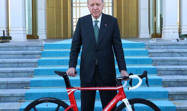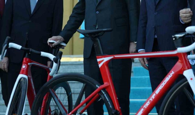 Bisikletçilere çeşitli hediyeler veren Cumhurbaşkanı Erdoğan, Gençlik ve Spor Bakanı, Türkiye Bisiklet Federasyonu yönetimi ve sporcularla hatıra fotoğrafı çektirdi.