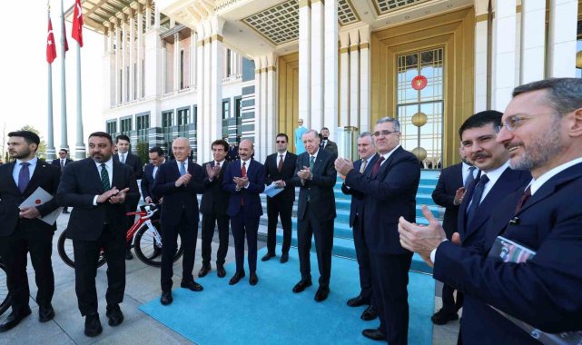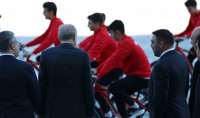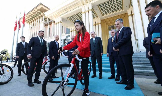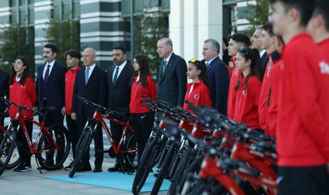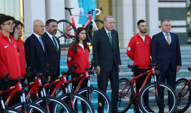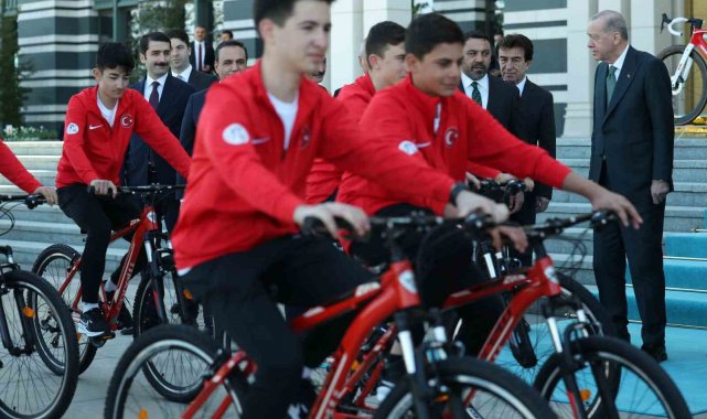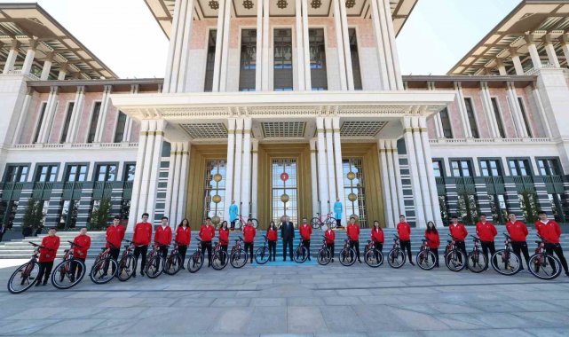 Cumhurbaşkanlığı Külliyesinin bahçesinde millî bisikletçilerle bir araya gelen Cumhurbaşkanı Erdoğan, bir süre sohbet ettiği gençleri tebrik ederek başarılarının devamını diledi.