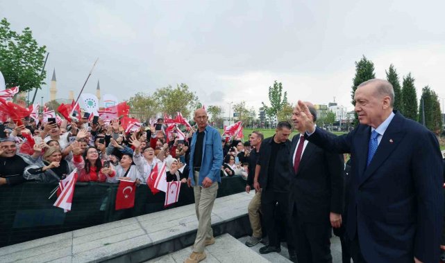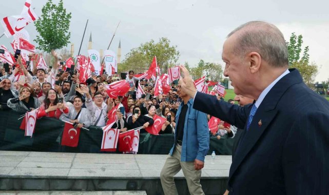 Cumhurbaşkanı Recep Tayyip Erdoğan, KKTC Cumhuriyet Yerleşkesi önünde halk tarafından büyük ilgiyle karşılandı.