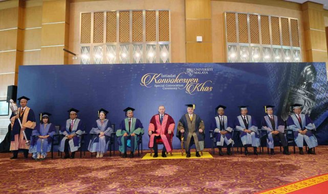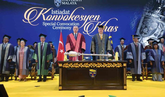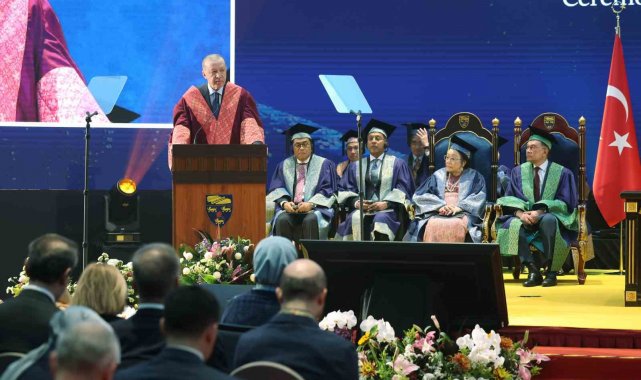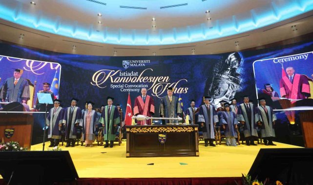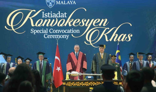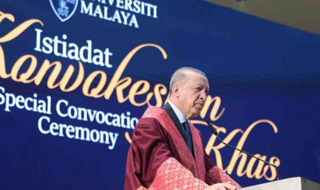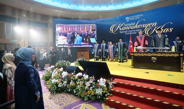 Cumhurbaşkanı Recep Tayyip Erdoğan, resmi ziyaret düzenlediği Malezya'da temaslarını sürdürüyor. Erdoğan, uluslararası ilişkiler alanında tevdi edilen ve Perak Sultanı Nazrin Şah tarafından sunulan fahri doktora beratı dolayısıyla düzenlenen törene katıldı. Cumhurbaşkanı Erdoğan'a Malezya'da Perak Sultanı Nazrin Şah tarafından fahri doktora beratı tevdi edildi. Cumhurbaşkanı Erdoğan burada gerçekleştirdiği konuşmasında, "Beş yıl aradan sonra dost ve kardeş Malezya'da tekrar bulunmaktan duyduğum memnuniyeti ifade ederek sözlerime başlamak istiyorum. Başbakan Enver İbrahim'in davetine icabetle ziyaret ettiğim Güzel ülkenize her gelişimizde kendimizi evimizde kardeşler arasında hissediyoruz. Rabbim aramızdaki dayanışma ve muhabbeti daim eylesin diyorum. Asya'nın iki yakasında yer alan Türkiye ve Malezya coğrafi uzaklığa rağmen esasen birbirlerinin dost, kardeş ve aynı zamanda ortağıdır. Bu ortaklığı 2014 yılında stratejik, 2022 yılında ise kapsamlı stratejik düzeye çıkardık. Ülkelerimiz arasındaki iş birliğinin önemli boyutlarından birini eğitim ve beşeri ilişkiler oluşturuyor" dedi.