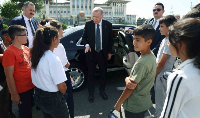 Cumhurbaşkanı Recep Tayyip Erdoğan, 15 Temmuz Şehitler Anıtı'nı ziyaret etmek üzere Adıyaman'dan Ankara'ya gelen çocuklarla bir araya geldi.