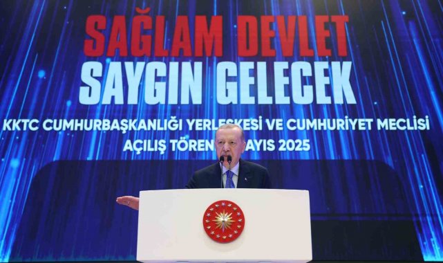 Cumhurbaşkanı Recep Tayyip Erdoğan, Kuzey Kıbrıs Türk Cum'uriyeti'nin başkenti Lefkoşa'da yapımı tamamlanan ve içinde KKTC Cumhurbaşkanlığı ve Cumhuriyet Meclisi'nin de bulunduğu, KKTC Cumhuriyet Yerleşkesi'nin açılışı sonrası düzenlenen programda konuşma yaptı. Konuşmasına salondakileri ve Kıbrıs Türklerini selamlayıp, karşısında muhteşem bir katılım gördüğünü söyleyerek başlayan Cumhurbaşkanı Erdoğan, "Rabb'im bu ihtişamınızın devamını nasip etsin. Bugün Akdeniz'in incisi, direnişin kalesi, vatan sevdasının ebedi ocağı, Mehmetçik ve Mücahitlerin destan yazdığı topraklardayız, Kuzey Kıbrıs Türk Cumhuriyeti'ndeyiz. 'Sağlam Devlet, Saygın Gelecek' şiarıyla bu topraklara kazandırdığımız muazzam eserlerin açılışını gerçekleştiriyoruz" dedi.