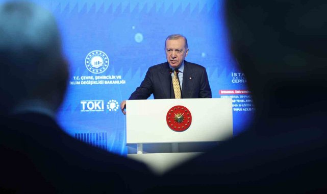 Cerrahpaşa Tıp Fakültesi'nin dönüşüm çalışmalarından söz eden Cumhurbaşkanı Erdoğan, "Cerrahpaşa Tıp Fakültesi'nin dönüşüm çalışmaları Büyük Marmara Depremi akabinde başlatılmış fakat ne yazık ki son derece yetersiz ve sınırlı diyebileceğim bir noktada kalmıştı. Güçlendirme ve yeniden inşa faaliyetlerini daha etkin bir hale getirmek üzere 2013 yılında yeni bir süreç yönetimi planladık. Hastanemizi hem başka bir yere taşımamız hem de depreme dayanıksız olan eski binayı yıkıp aynı yere yenisini inşa etmemiz gerekiyordu. 2018'den itibaren tüm bu çalışmalar yeni kurulan İstanbul Üniversitesi Cerrahpaşa bünyesinde devam etti. Proje üç etaplı tasarlandı ve eş zamanlı olarak hem inşaata başlanması hem de eğitim ve sağlık hizmetlerinin aksamadan devam ettirilmesi hedeflendi. Bu amaçla normalde son etap olarak inşası planlanan alana yaklaşık 40 bin metrekare büyüklüğünde 23 adet çelik konstrüksiyon bina inşa edildi. Böylelikle hem burada öğrenim gören gençlerimizin eğitimleri kesintisiz şekilde devam etti hem de vatandaşlarımıza sunulan sağlık hizmetlerinin devamı sağlandı" dedi.